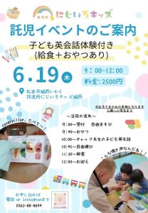 【イベント特別料金】【3時間託児料金】 2500円(昼食+おやつ付き)